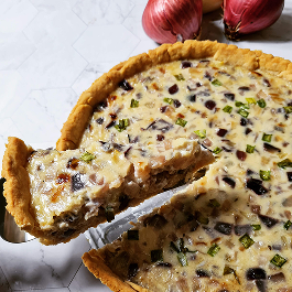 קיש בצל זהוב וטעים, עם תחתית פריכה ומילוי עשיר של בצל מתוק ומטוגן, תפוחים וגבינות רכות שמתחברים ליצירת שילוב מושלם של טעמים. כל חתיכה מלאה בניחוחות חמימים ומרגשים – מושלם לארוחה קלילה או כנשנוש מפנק לצד סלט רענן.